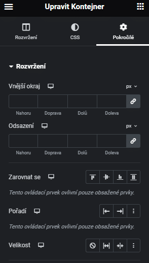 Pokročilá nastavení Kontejneru