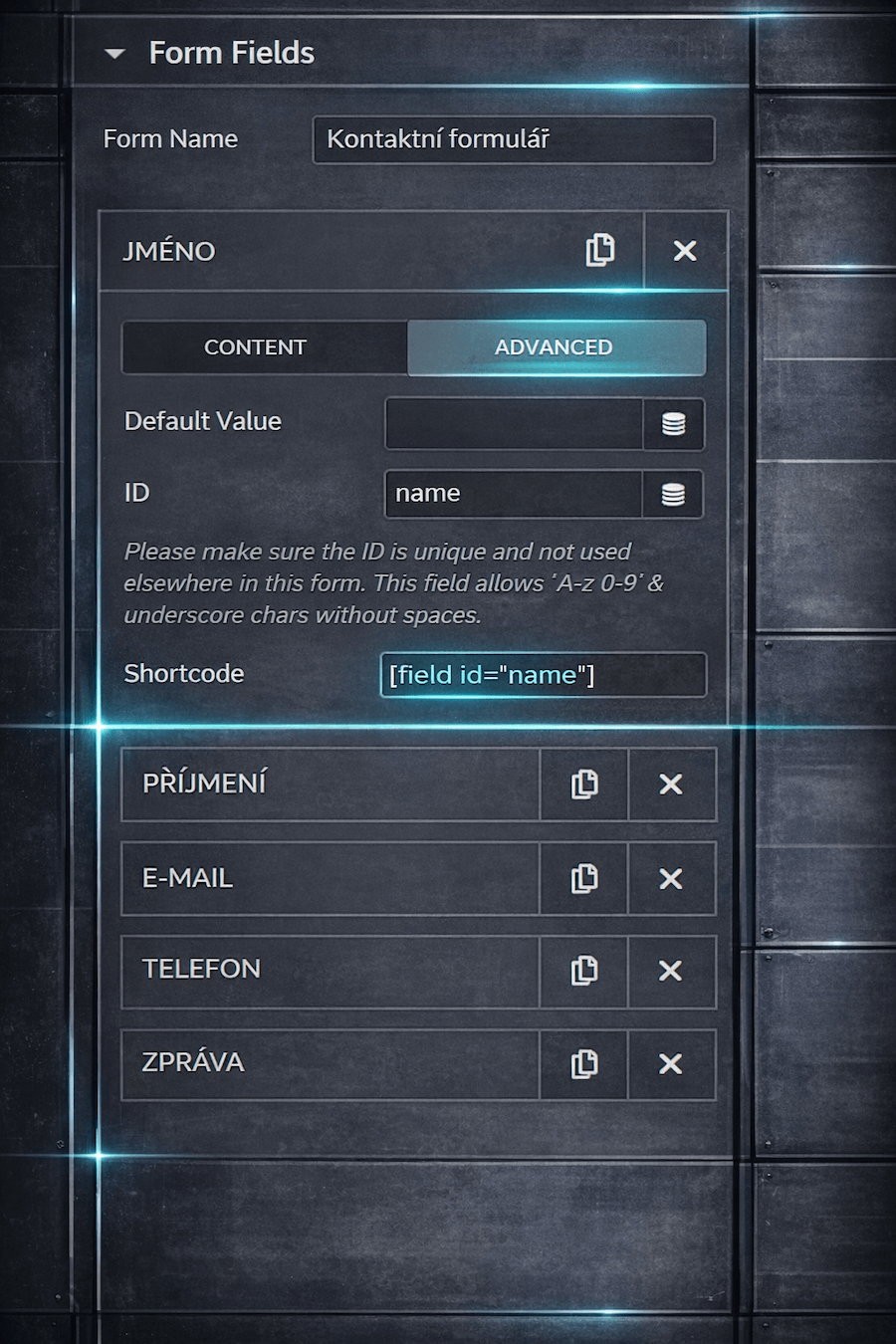 Zde nastavíte ID formuláře.