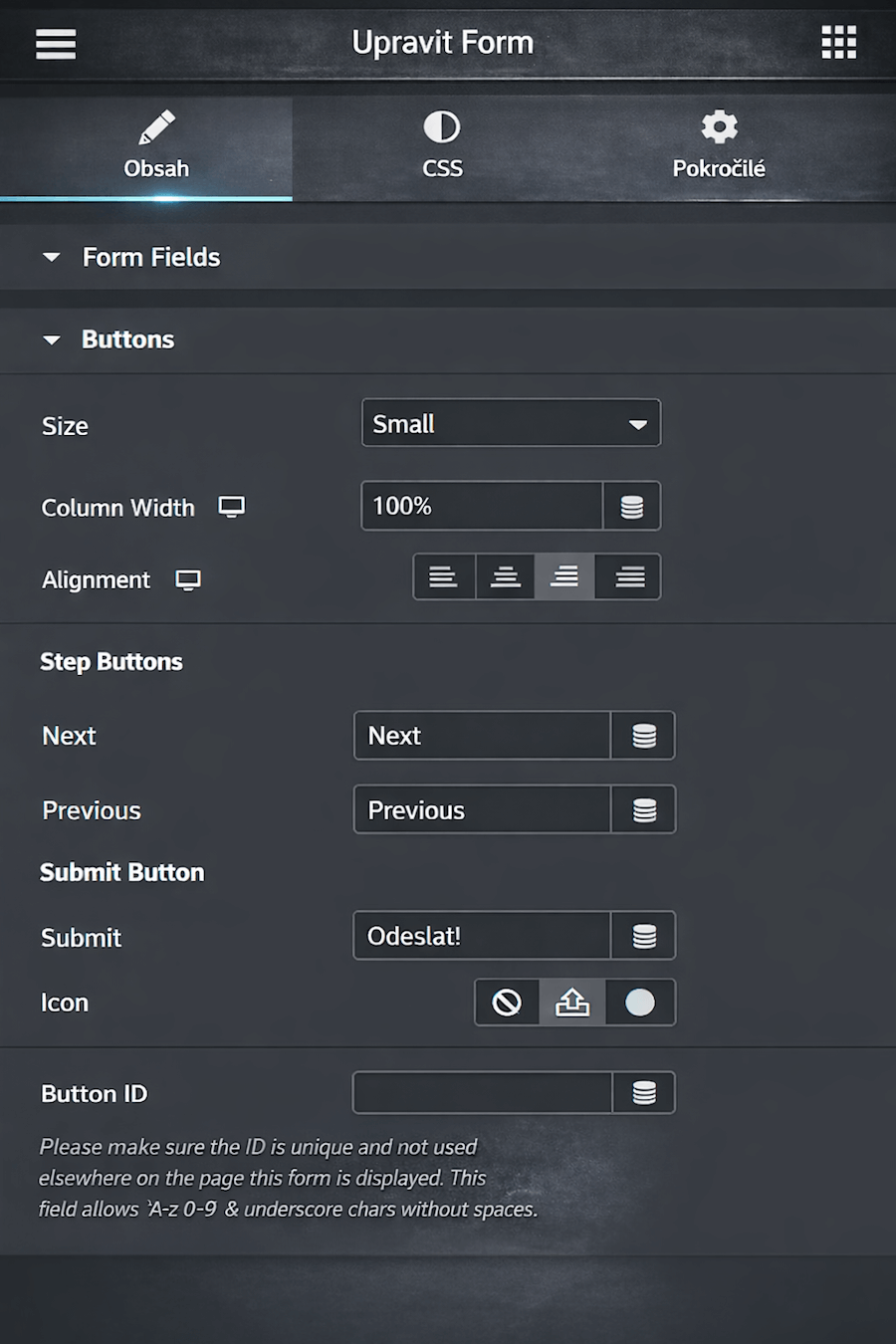 Vícekrokové formuláře (Steps settings)